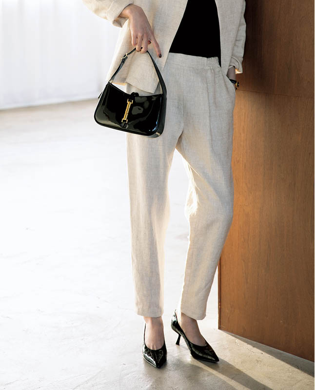 シンプルテーパードパンツ ウエストのサイドから後ろがゴム使いになった、着心地がよくシルエットのきれいなテーパードパンツ。UN-0007のバンドカラーのジャケットとお揃いで作っておくと、スタイリッシュなセットアップとして着られます。オフィスコーデとしてもおすすめ。通常価格 ¥880~¥1,760セール価格 ¥880〜 通常価格単価 あたり -