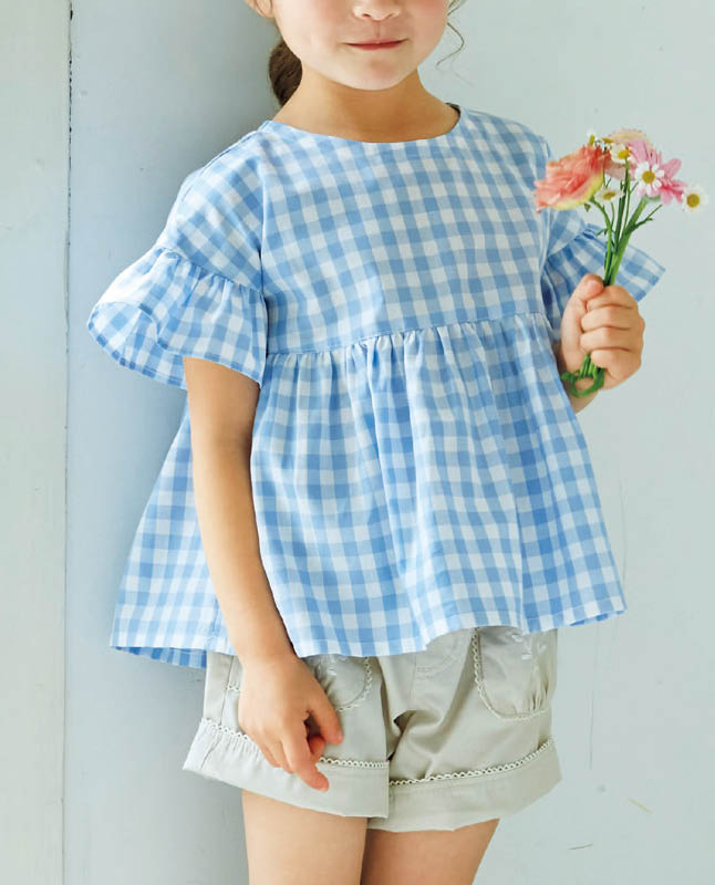 女の子が大好きなフリフリのブラウス ハイウエスト切り替えでふわりとさせたボリューム感が素敵なブラウス。袖のフリルと相まってガーリーな印象に仕上がりました。後の衿ぐりはゴムテープを通して、あきなしデザインでも着やすいデザイン。衿ぐりはバイアステープで始末して、スッキリと仕立てます。 ◾︎デザイン◾︎[ブラウス]あき……あきなし身頃……後ろ衿ぐりにゴムテープを通してあります。ウエストに切り替え、ギャザー入り袖………フリル袖、半袖衿………衿なし、ラウンドネック ※子供(こども)服の型紙です。※こちらのデザインは「いっぱい作りたい女の子の夏服」に掲載されています。通常価格 ¥550~¥1,100セール価格 ¥550〜 通常価格単価 あたり -