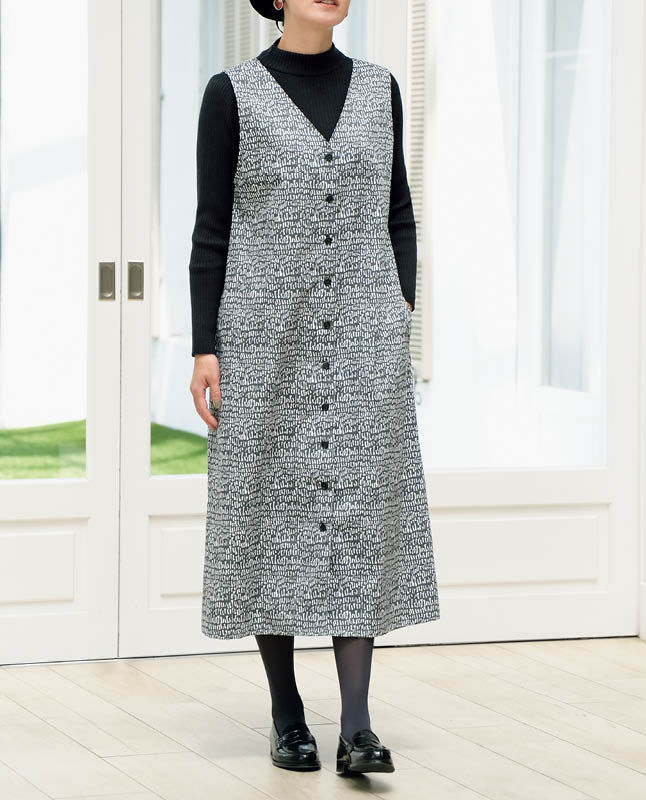 1年中着られる着回し抜群アイテム セミタイトシルエットのVネックジャン パースカート。前ボタンあきで縦のラ インを強調した、スタイリッシュな1 点です。 衿ぐりは見返し始末、袖ぐりはバイアステープで始末しています。 簡単に作れて着やすいアイテムです。 ◾︎デザイン◾︎[ジャンパースカート]あき……前ボタンあき身頃……両脇に縫い目を利用したシームポケット衿………衿なし、Vネック ※こちらのデザインは「大人のかんたんソーイング2024-2025秋冬」に掲載されています。通常価格 ¥770~¥1,650セール価格 ¥770〜 通常価格単価 あたり -