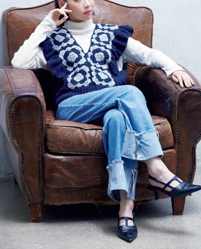 【DL 編み物】モチーフつなぎのフリルベスト Design by MANAMI(DLknit-0052)