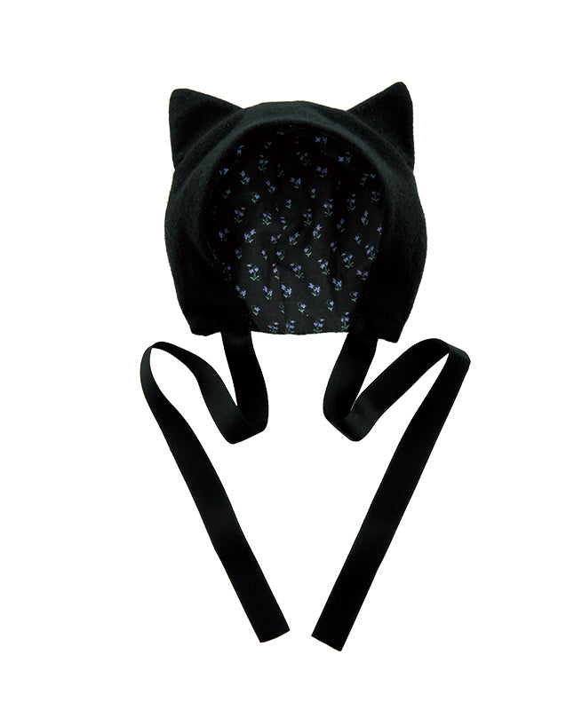ねこ耳がついたボンネットをかぶって、 すみれ柄のワンピースは歩くたびひらりと揺れる。 おすまし顔の女の子となかよしの猫ちゃんが、 今からお茶会をはじめるみたい。