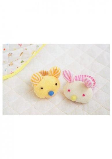 うさぎの顔の中にはプラスチック鈴を入れて作ります。