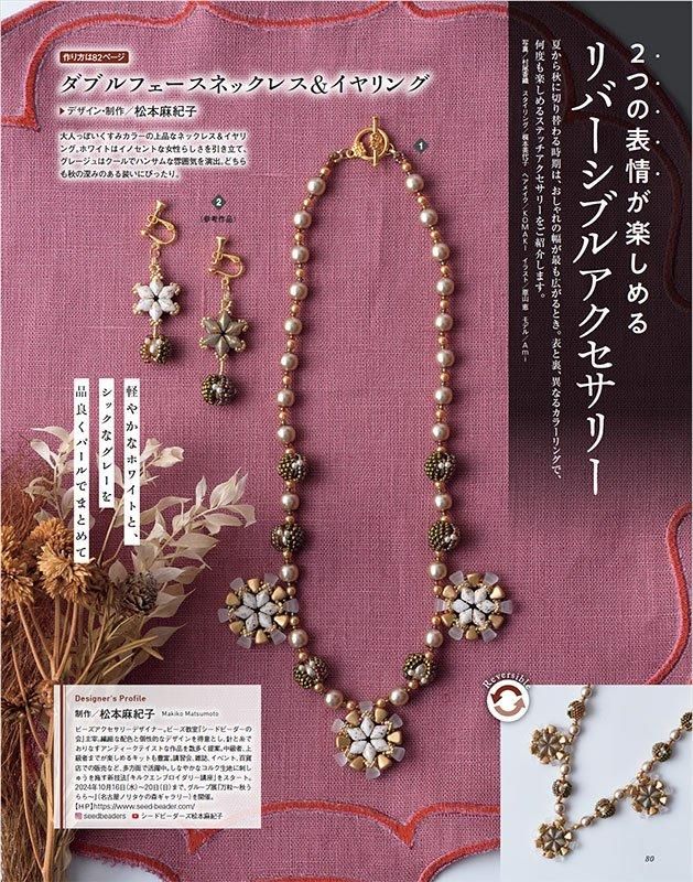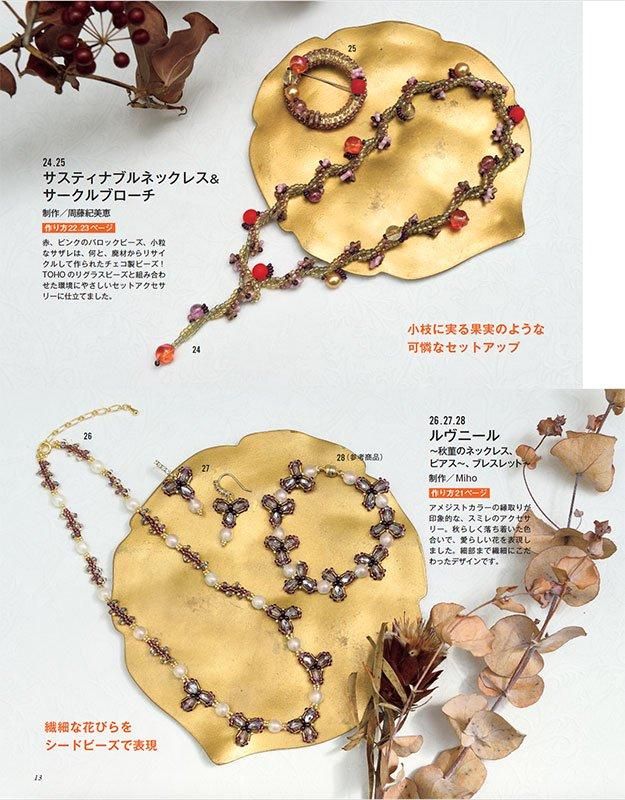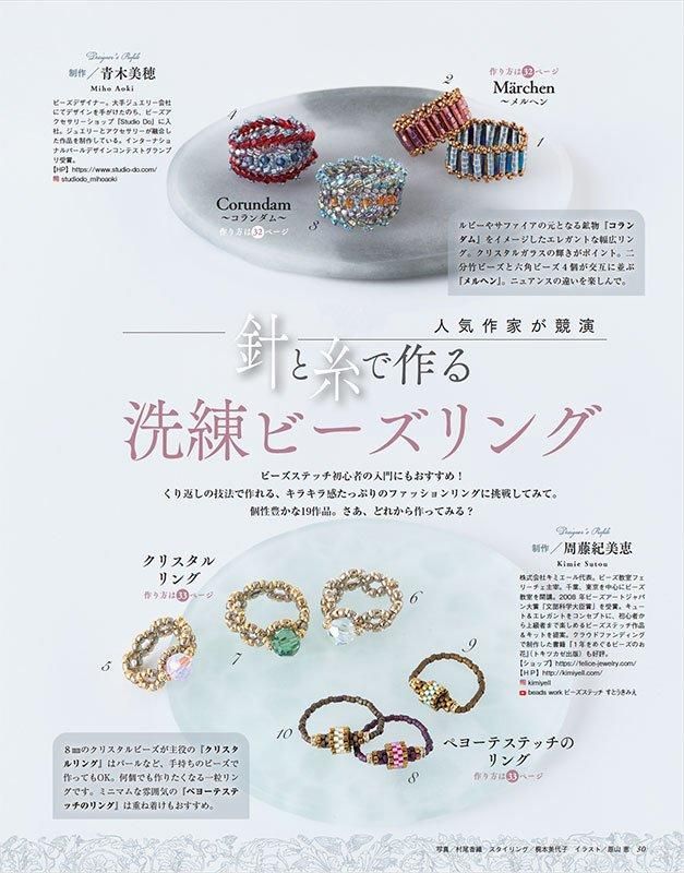 巻頭特集は秋のおしゃれアクセサリー。通すだけ、つなぐだけの洗練ネックレスやリボンのアクセ、ちょっとしたステッチのアクセサリーを掲載/キラキラ洗練ビーズリング/佐々木公子さんレトロモチーフ/秋のクラシカルブローチ/秋を彩るステッチアクセサリー/ねむみさんのハロウィンモチーフなど