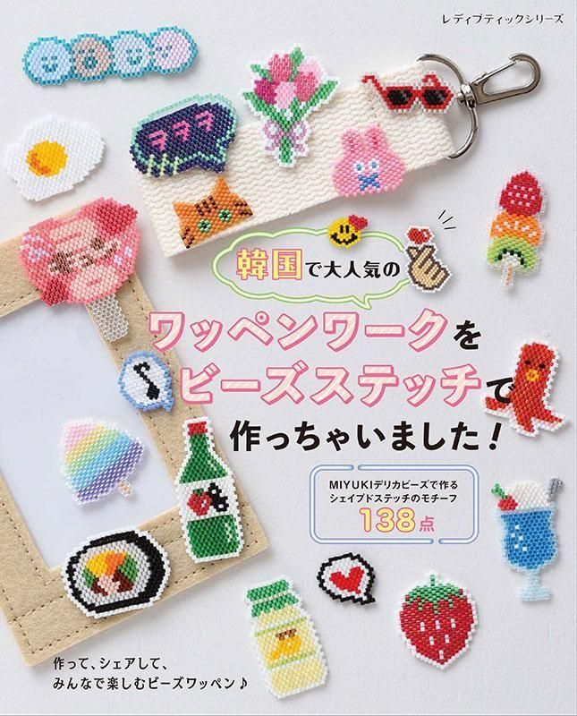 韓国で大人気、日本でも注目の「ワッペンワーク」をビーズステッチにアレンジした、ビーズワッペン。MIYUKIデリカビーズを使ったシェイプドステッチで作るビーズモチーフ138点と、使い方の例もたくさん紹介しています。韓国フードや絵文字のデザイン、ネオンサイン風など、推し活に使いたいモチーフも満載。お気に入りを見つけて、作ったワッペンは仲間とシェアして楽しんで。