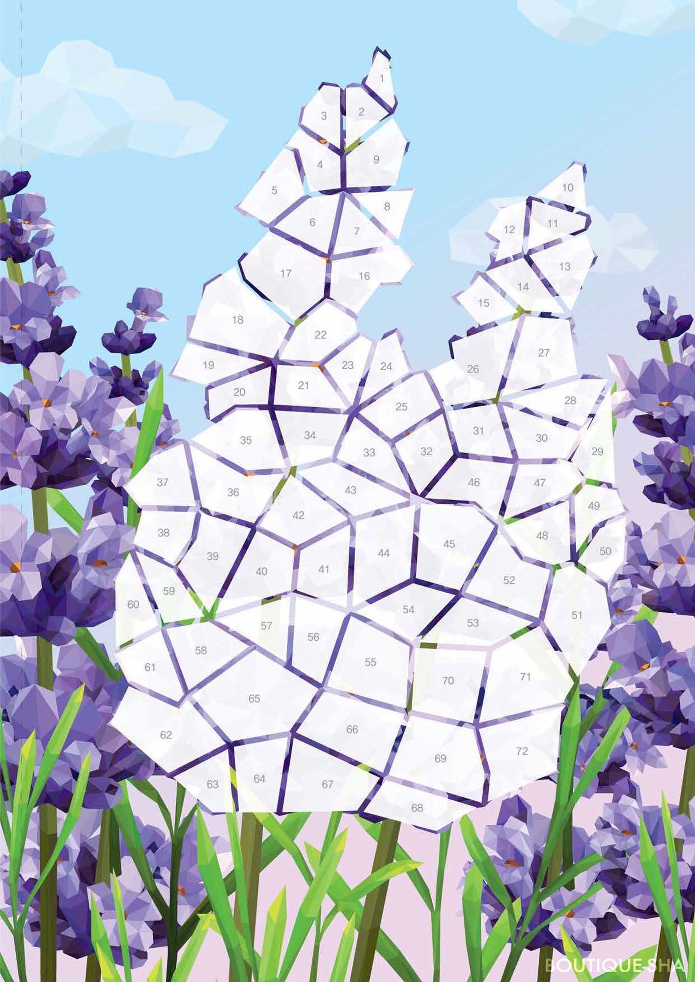 ラベンダーの癒しを感じる紫から「花の女王」と称される深紅のバラまで、さまざまな花の色合いを、シールを使って完成させていきます。