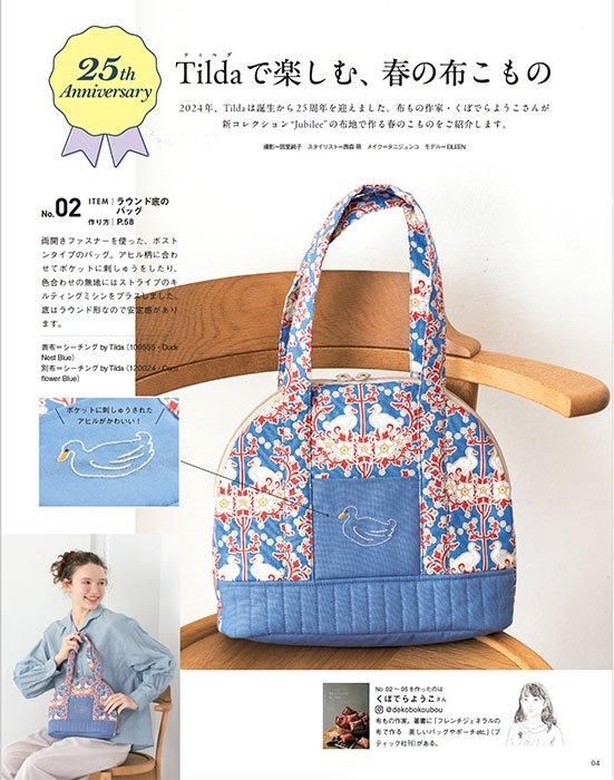 ハンドメイドの小物を持って春のお出かけ応援号!バッグやポーチ、一重仕立てのおしゃれなジャケット、春色ブローチなど、春のおでかけにぴったりのアイテムをご紹介。東京・浅草橋の人気手芸問屋特集も!付録は、北欧の人気プリントTilda25周年記念アニバーサリーカットクロスと、大好評「商用OK!ハギレのハンドメイドBOOK」の小冊子付き。