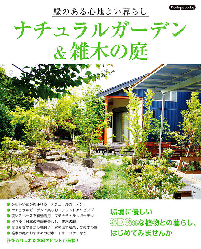 BM1263「雑木の庭づくり」とBM1435「ナチュラルガーデンスタイル」から記事を厳選して再編集。自然をたくさん取り入れる雑木の庭やナチュラルガーデンは、SDGsの考えから、地球に優しい環境づくりとして再び人気。それぞれのお庭の施工実例とデザインの考え方、おすすめの植木など情報満載の一冊。