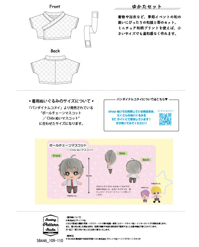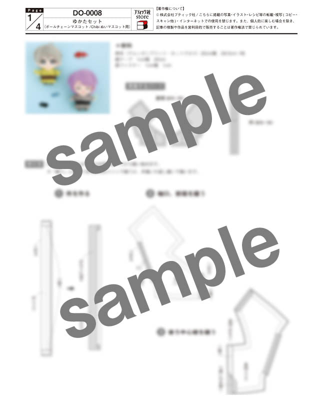 【型紙】ゆかたセット(ボールチェーンマスコット/Chibiぬいマスコット用)(DO-0008)