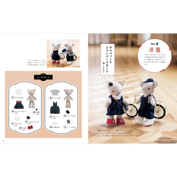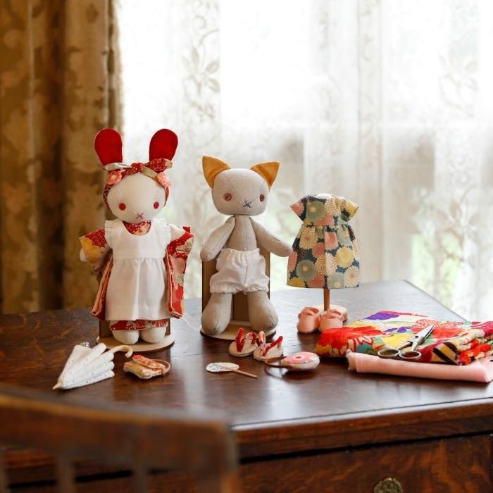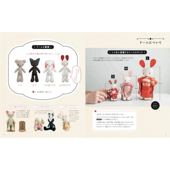おうちに余っている和布のハギレや、タンスにねむっている着物などを使ってかわいい着せかえドールが作れる一冊。 着物や浴衣などの和服から、ワンピースやブラウスなどの洋服まで服の種類もいろいろ。ドールのサイズはL、M、Sの3種類。飾ったり、バッグチャームやストラップにすることもできる。