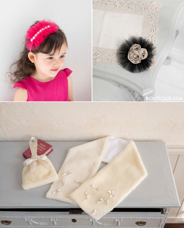 ドレスだけでなく、髪飾りやバッグ、ボレロなども掲載。手作りでトータルコーディネートができます。ぜひお手に取ってみてください。