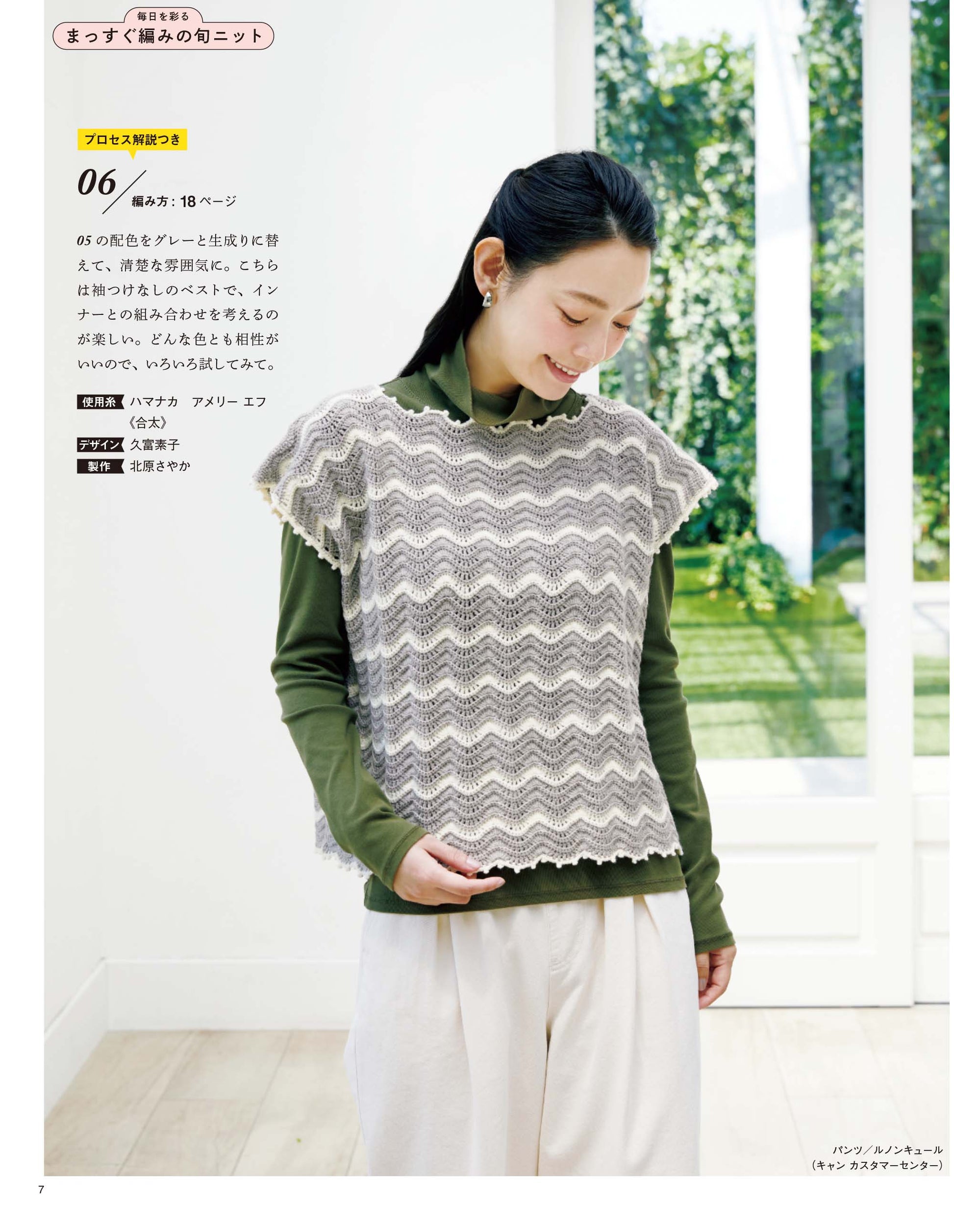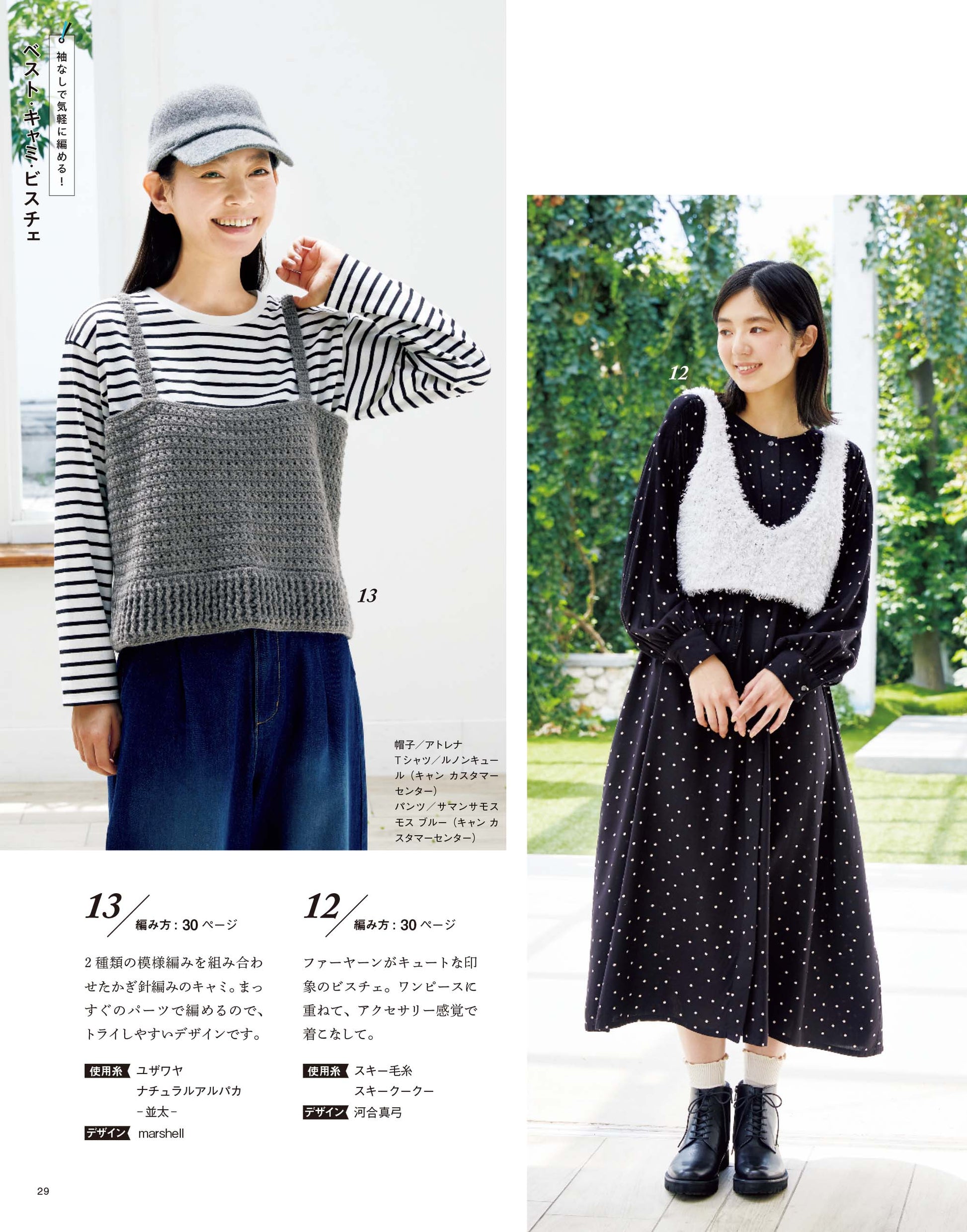 ベスト、キャミ、ビスチェ、プルオーバー、カーディガンに加え、帽子やマフラーなどのこものも充実。
