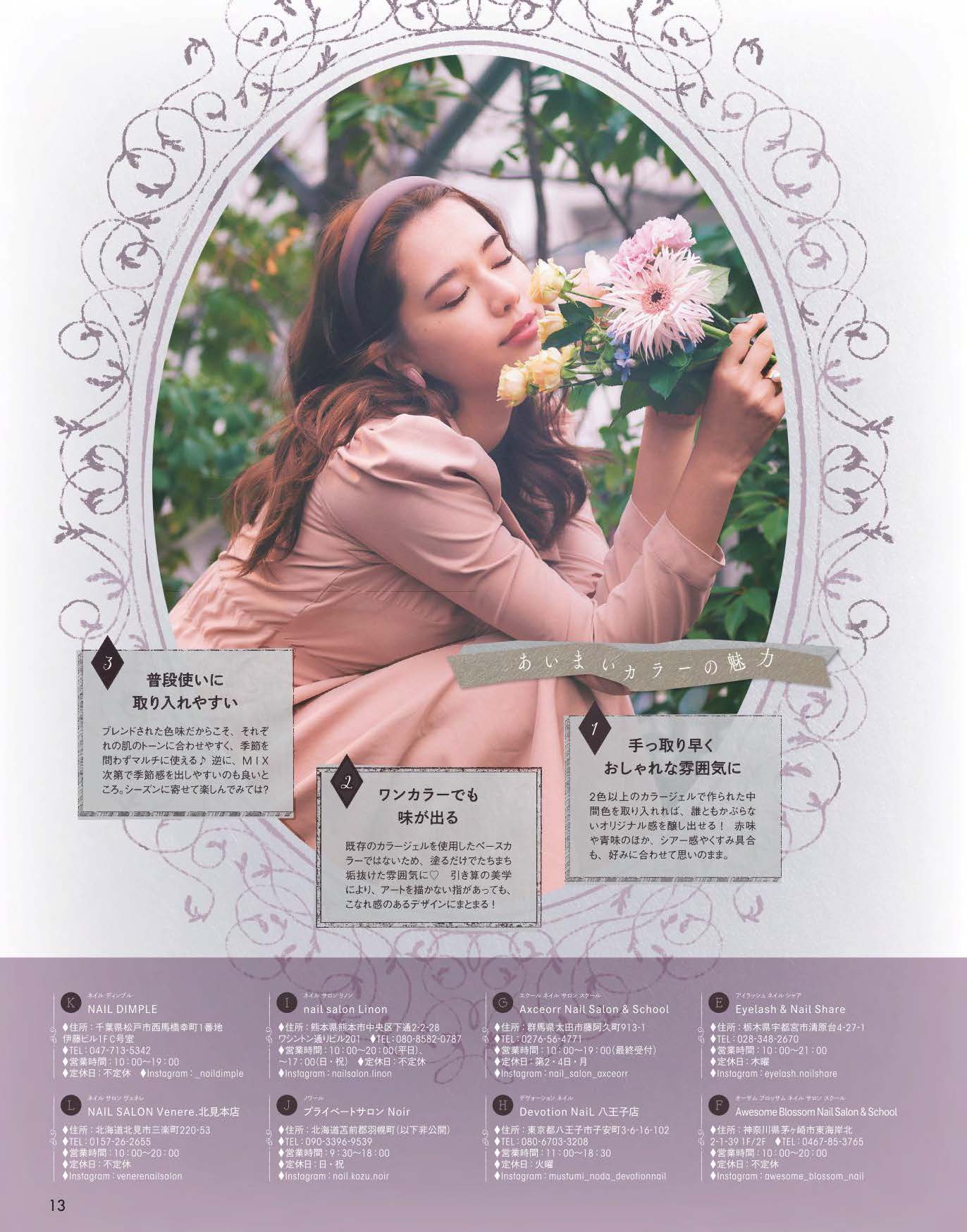 ●NEOボタニカル&ニュアンスの春アート●夢カワ×毒カワ●第7世代研究会(ネイリスト同士が対談しながら最新ネイルアートの裏技など●ママレッスン(卒業式や入学式に合わせたデザイン)●マットトップジェル 比較●ネイルのための自撮りレッスン●ブランドアイテムエデュケーター2021イチオシアイテム企画