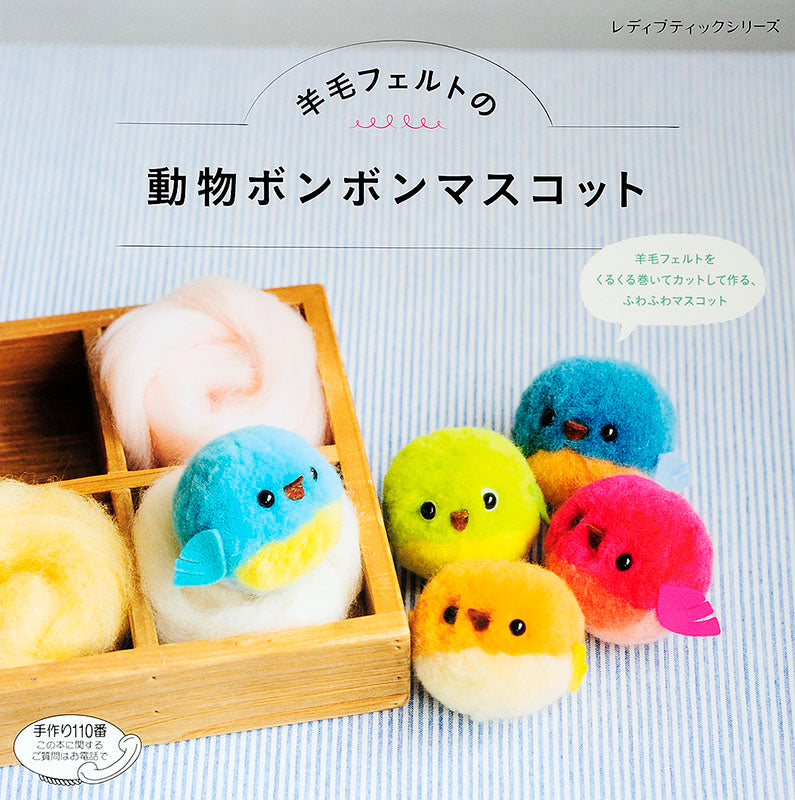 羊毛フェルトをさいて、くるくる巻いてつくる動物ボンボンマスコット。ふんわりやさしい風合いが羊毛フェルトならではの仕上がりに。丁寧なプロセス解説つきで、はじめてでもかわいいマスコットが作れる。