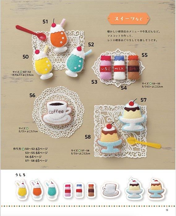 フェルトで作るレトロな雰囲気のどうぶつマスコット&雑貨、喫茶モチーフのマスコット本。バンビやねこ、とり、くまなど懐かしい雰囲気とパステル調に仕上げたかわいいどうぶつたちがいっぱい。作ったあとは、どうぶつと雑貨のマスコットを組み合わせて、バッグチャームやストラップにアレンジして楽しんでください。全作品、実物大の型紙付きです。著者は人気手芸作家の佐々木公子さん。