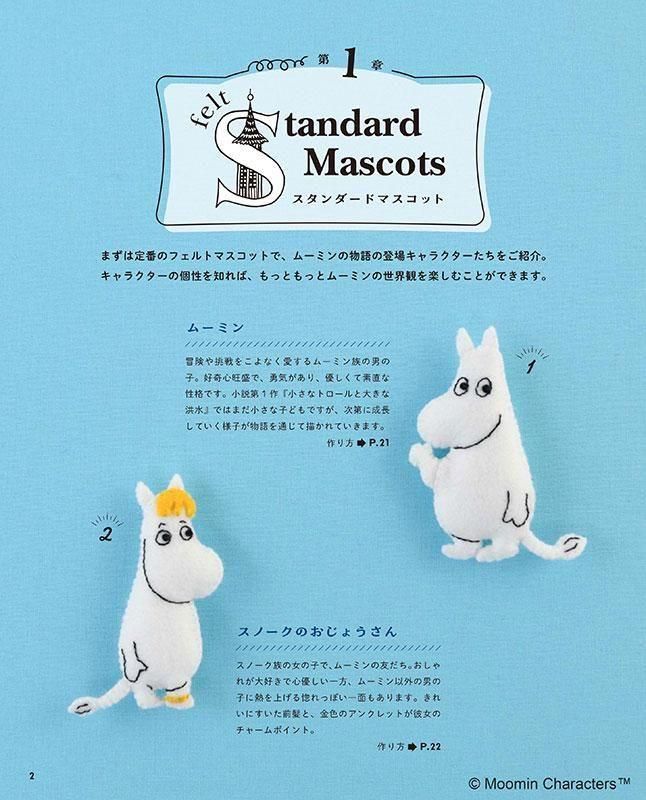 フィンランド生まれの人気キャラクター、ムーミンの物語がフェルトマスコットに。スタンダードなマスコットだけでなく、世界観をぎゅっと詰め込んだリースや日常生活で使える実用アイテムなど、フェルトを使ったアイデア満載の作品がいっぱい。全作品に実物大の型紙とわかりやすい作り方つき。 AB判(260×210mm)