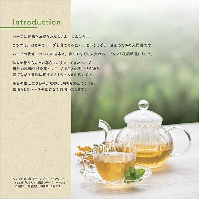 ビギナーさん向けシリーズのうちの1冊。はじめてでも育てやすい、人気のハーブの育て方をわかりやすく解説した本。それぞれのハーブの利用法、お手軽レシピなどの楽しみ方もあわせて掲載。