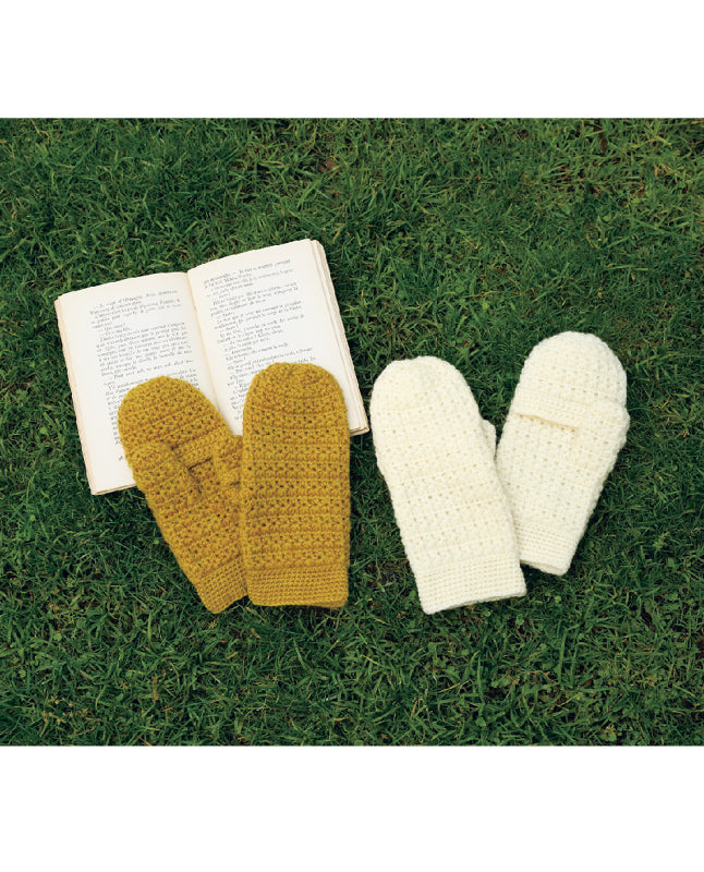 かぎ針編みで作るスタークロッシェのミトン 編み地がかわいいかぎ針編みのミトンは、すべての指先が出せる仕立てに。外出中にスマホを操作するときにも便利です。 ▪︎使用糸▪︎ハマナカ アメリー(並太毛糸) ▪︎編み方▪︎1. 鎖編みの作り目をし、細編みで手首を輪に編みます。2. 続けて模様編みで本体を輪に編みます。途中で親指位置、指出し入れ位置に鎖を編みつけます。3. 本体の編み終わりをしぼり止めします。4. 親指位置から目を拾い、模様編みで親指を輪に編み、しぼり止めします。途中で親指出し入れ位置に鎖編みを編みつけます。5. 指出し入れ位置、親指出し入れ位置から目を拾い、それぞれ細編みを編み、脇を巻きかがりします。 ▶︎レシピには分かりやすい基礎テクニックのイラストつき!▶︎こちらのレシピは文章パターンではありません。日本式の編み図で表記しています。 ※こちらのデザインは「今編みたいニット秋冬2025-2026」に掲載されています。通常価格 ¥440セール価格 ¥440 通常価格単価 あたり -