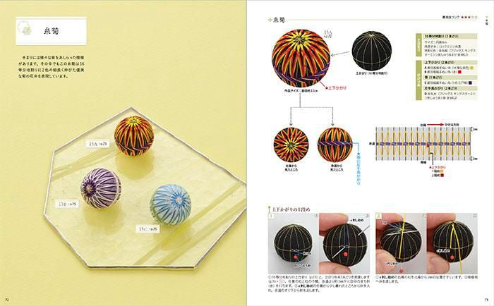 直径2㎝の小さな手まりの作り方を、はじめての人にも分かりやすい写真解説つきで紹介。梅、桜、菊、ダリアなどの花模様、紙風船、風車、吉原つなぎなど伝統的な模様をかがって万華鏡のような美しい手まりを作ります。作った手まりはネックレスやピアス、かんざしなどアクセサリーに。木原小夜 著