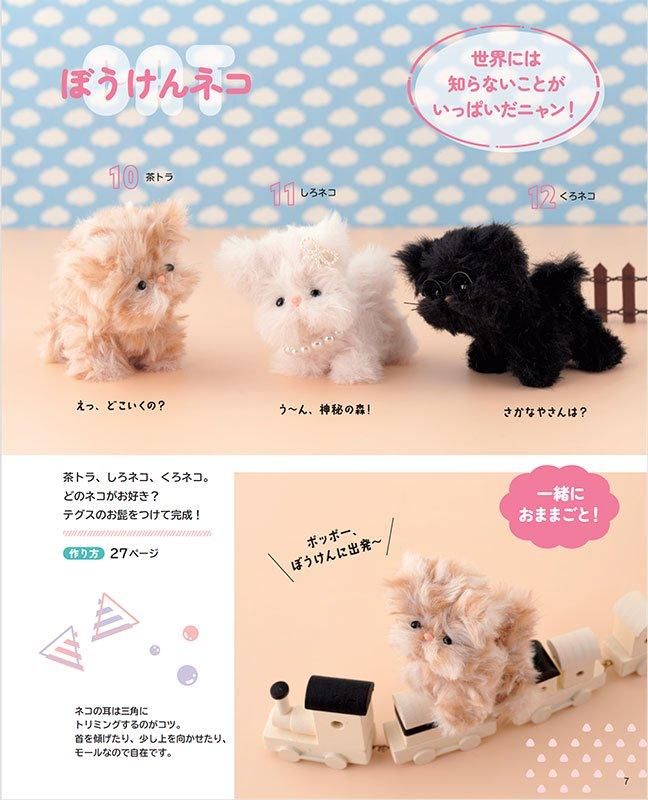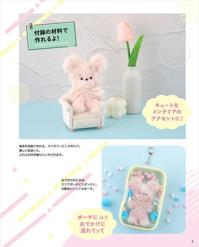 基本のベアの他、うさぎ、コアラ、立体感のあるイヌやネコなどの作り方も掲載。いつでも一緒にいたい、ふわふわな仲間たちが満載。長坂純代(kiki)著。