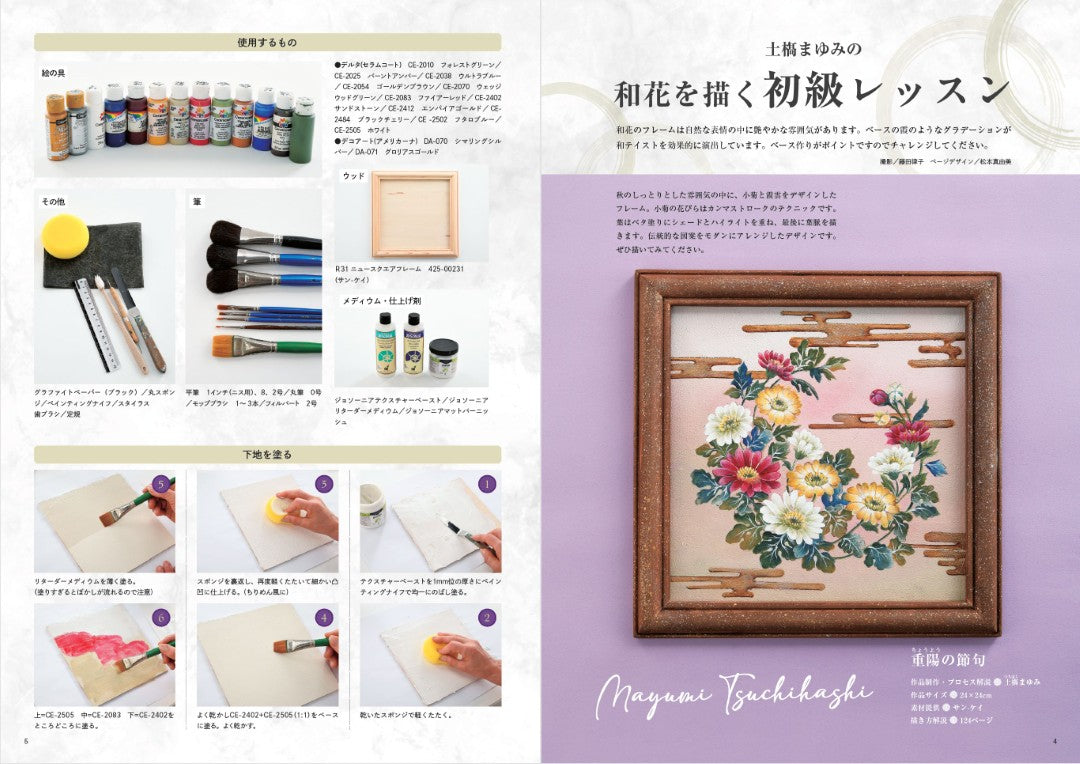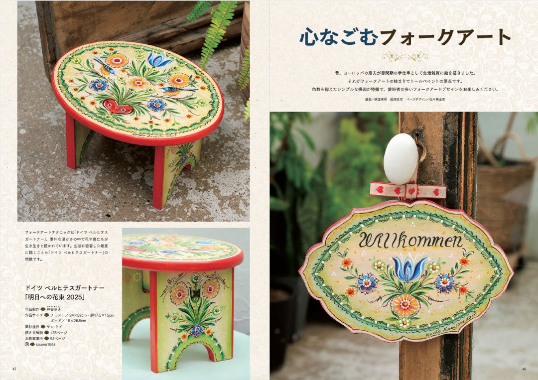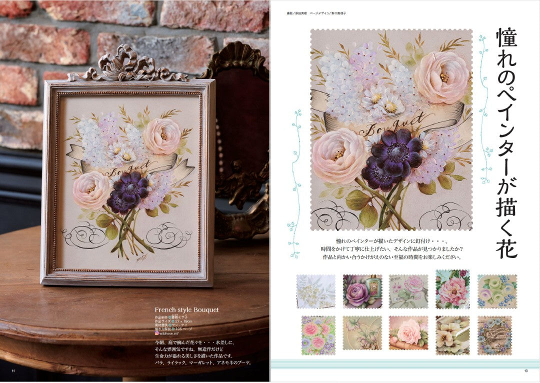 選んだお花やタッチなど、それぞれのペインターさんの個性が強く表現されています。その他、「ハロウィンとクリスマス」「心なごむフォークアート」「和花と風物詩」などを特集。