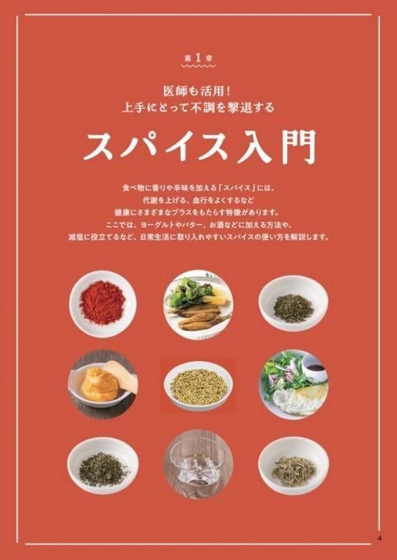 カレーや辛味でおなじみのスパイスは、健康効果も豊富。例えばカレーの香りの主成分であるクミンは、脂質代謝異常や生活習慣病の改善に効果的。身近なスパイスの健康効果から保存法、納豆やミルクとの組み合わせまでスパイスの魅力が詰まった一冊。