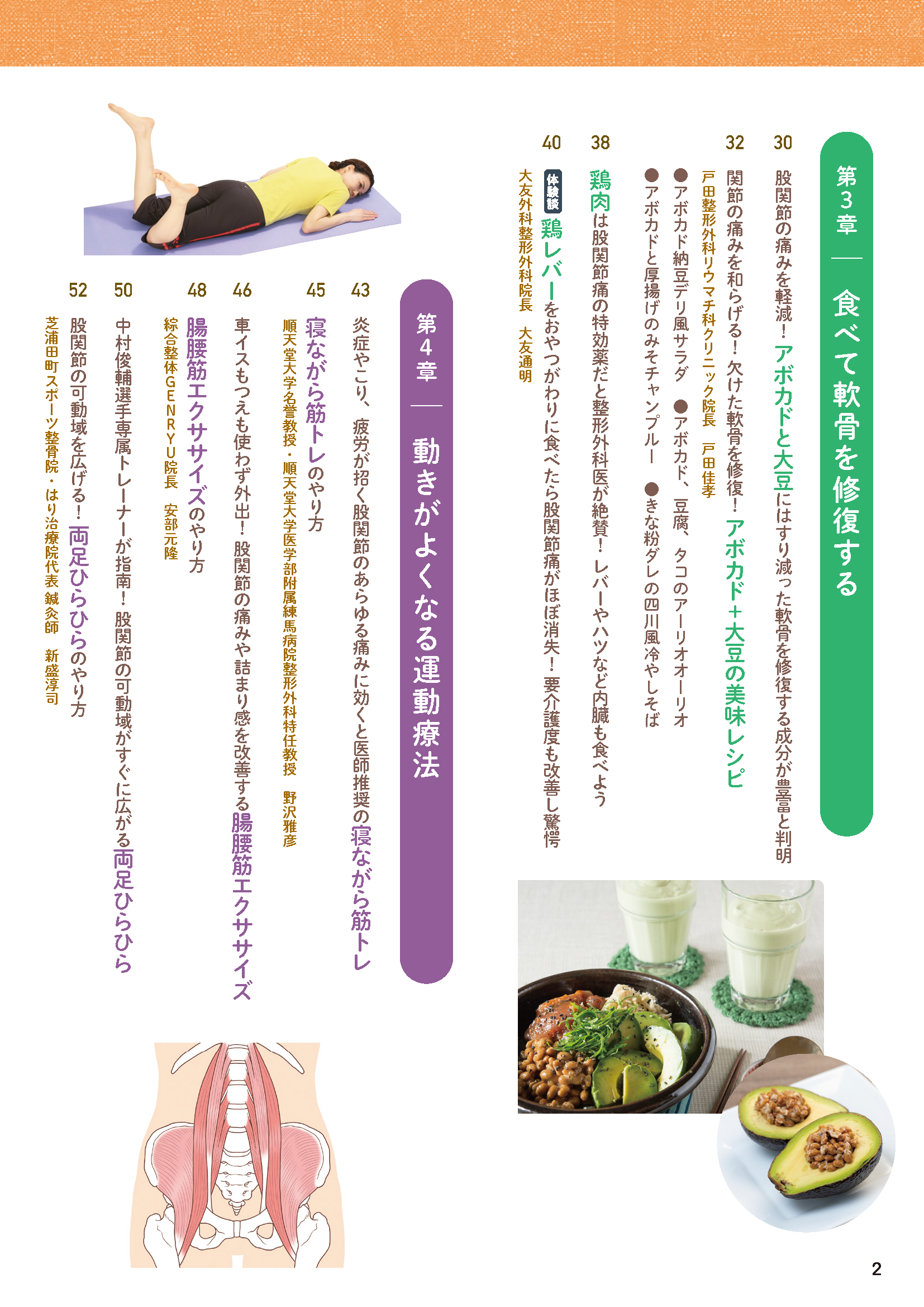 専門医が勧める股関節の可動域を広げる運動療法、手術が回避できた名治療家考案の股関節痛改善法、変形性股関節症に効く食事、遠くのツボや反射区から股関節痛をとる裏ワザなど、内容盛りだくさんです!