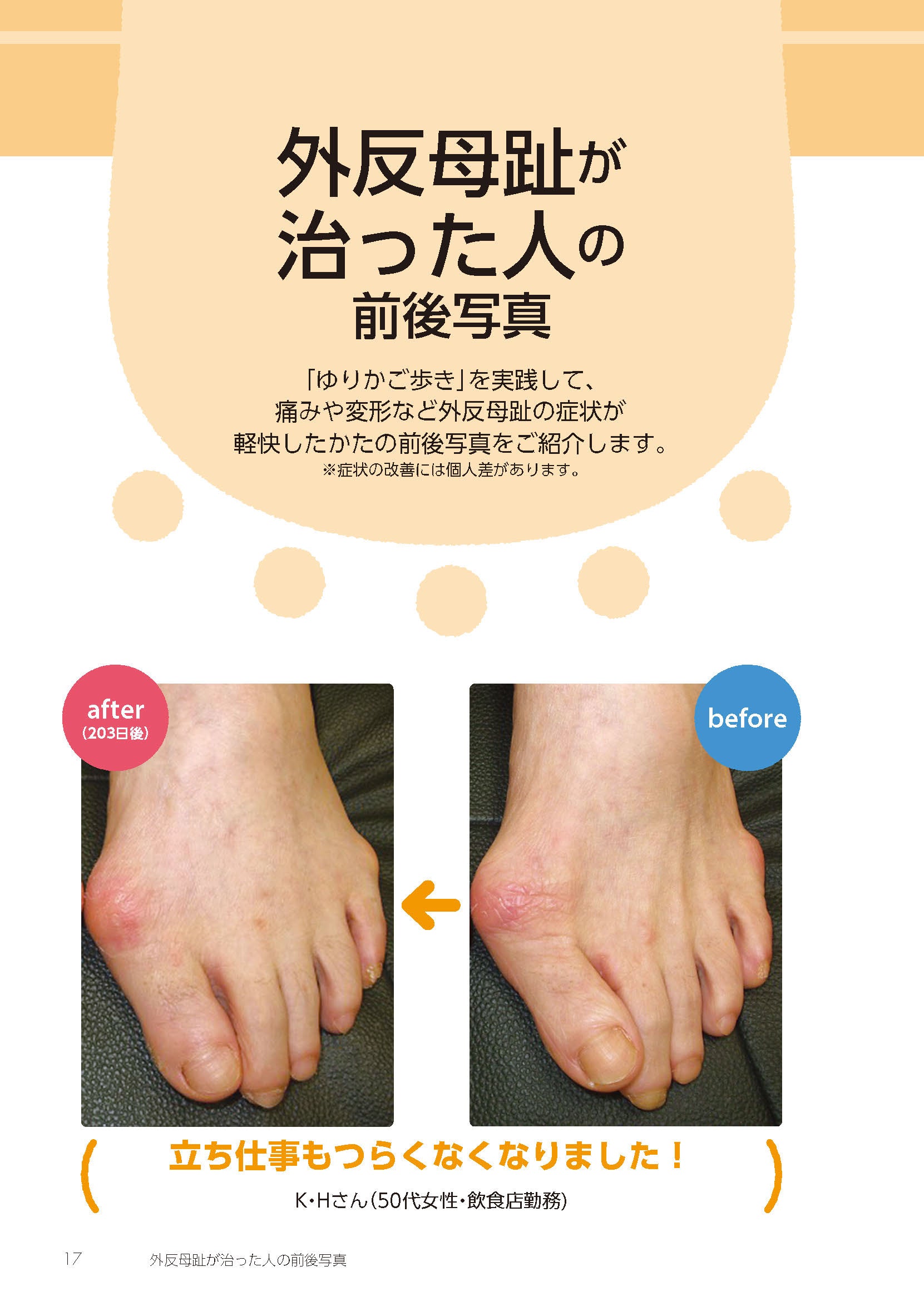 この本では、外反母趾を治すための、まったく新しい方法をお教えします。それは「歩き方」を変えること。当協会が30年以上かけて研究し、考案した「ゆりかご歩き」は手術なし、道具なしで外反母趾を改善させる最強メソッドです。ゆりかご歩きで、足の痛みや変形を治した人たちは、これまで5000人以上に上ります。