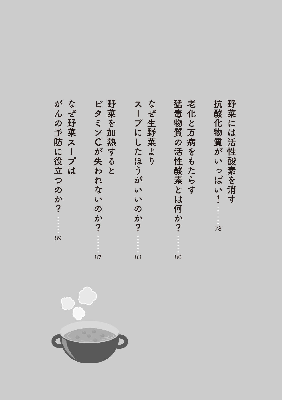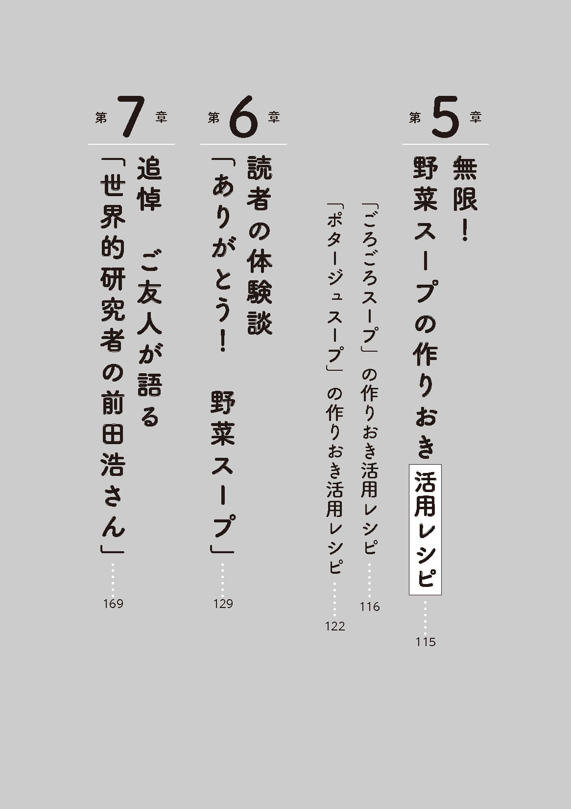 抗がん剤の世界的研究者、前田浩熊本大学名誉教授のベストセラー「最強の野菜スープ」の第4弾。大学教授や医師、女優らも愛飲し、「健康になった」「みるみる元気に」という著名人たちの感謝の声を集めた一冊。もちろん野菜スープのレシピも掲載しています。