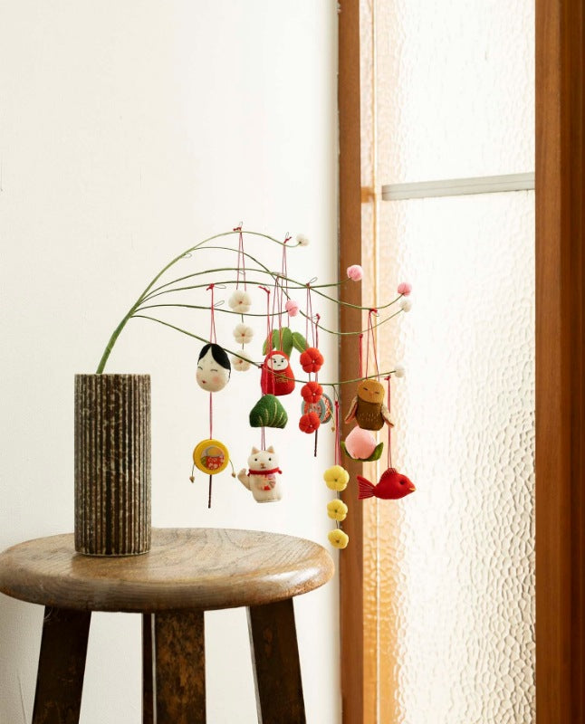 毎年発生する自然災害、突然沸き起こる新型ウイルスの流行。そんな時こそ、縁起のいい飾りもので、運気をアップさせては。置きもの、タペストリー、根付けなど、趣のある和布で作った40点。すべて縫い代つきの型紙ですぐ作れる。AB判(260×210mm)
