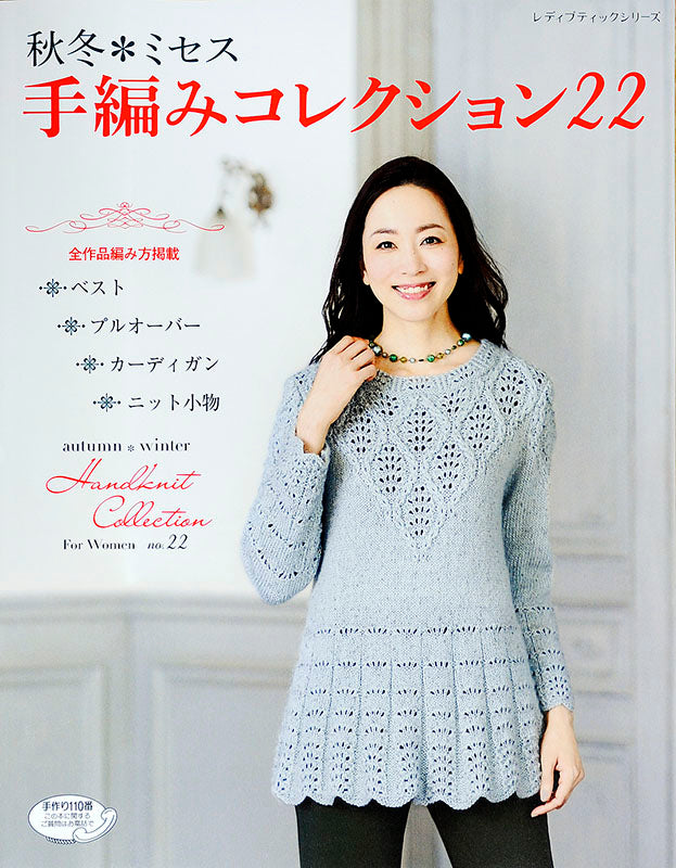 ミセス向き秋冬の手編みニット作品集。ベスト、プルオーバー、カーディガンなどのウエアとネックウォーマー、帽子などの小物を紹介。すべて編み方つきで38点掲載。通常価格 ¥1,038セール価格 ¥1,038 通常価格単価 あたり -