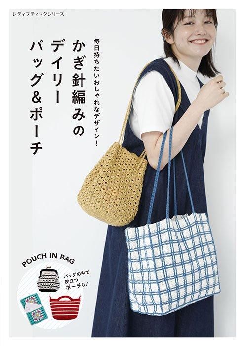 春夏糸で編む、デイリー使いにぴったりのかぎ針編みのバッグ・ポーチの本。シンプルで使いやすい形から、模様や色使いがおしゃれに映えるデザインなど展開。日々のスーパーでのお買い物、ちょっとそこまでのお出かけ、たたんで使えるエコバッグタイプのバッグ。バッグの中で役立つポーチまで幅広く掲載。