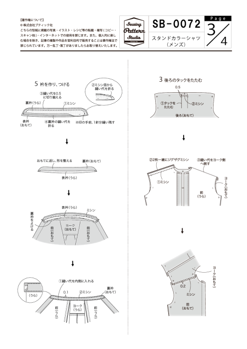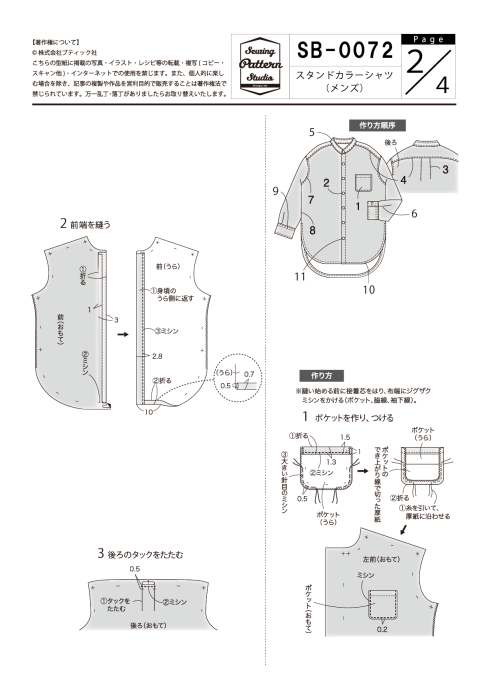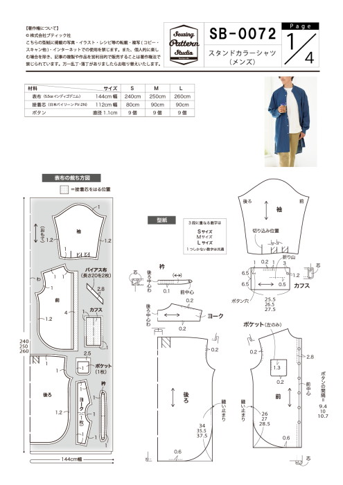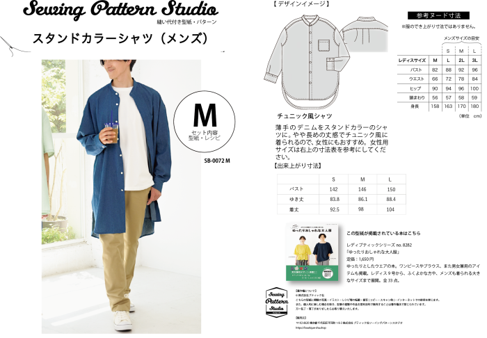 【型紙/メンズ】スタンドカラーシャツ(SB-0072)