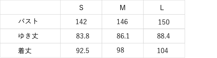 【着丈】92.5cm/ 98cm/ 104cm
