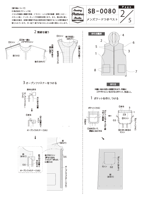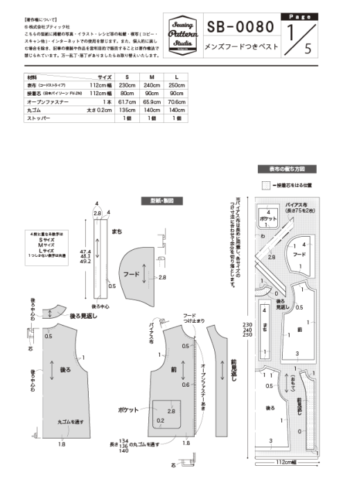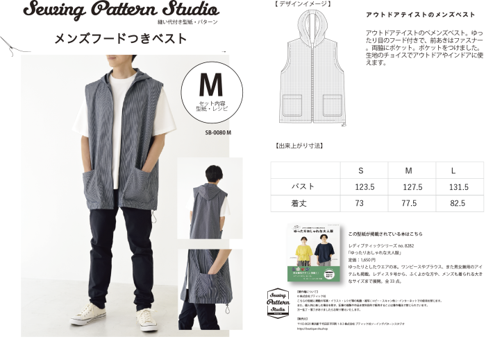 【型紙/メンズ】フードつきベスト(SB-0080)