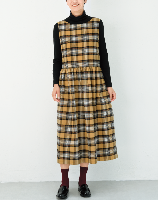 1年中着られる着回し抜群アイテム セミタイトシルエットのVネックジャン パースカート。前ボタンあきで縦のラ インを強調した、スタイリッシュな1 点です。 衿ぐりは見返し始末、袖ぐりはバイアステープで始末しています。 簡単に作れて着やすいアイテムです。 ◾︎デザイン◾︎[ジャンパースカート]あき……前ボタンあき身頃……両脇に縫い目を利用したシームポケット衿………衿なし、Vネック ※こちらのデザインは「大人のかんたんソーイング2024-2025秋冬」に掲載されています。通常価格 ¥770~¥1,650セール価格 ¥770〜 通常価格単価 あたり -