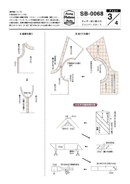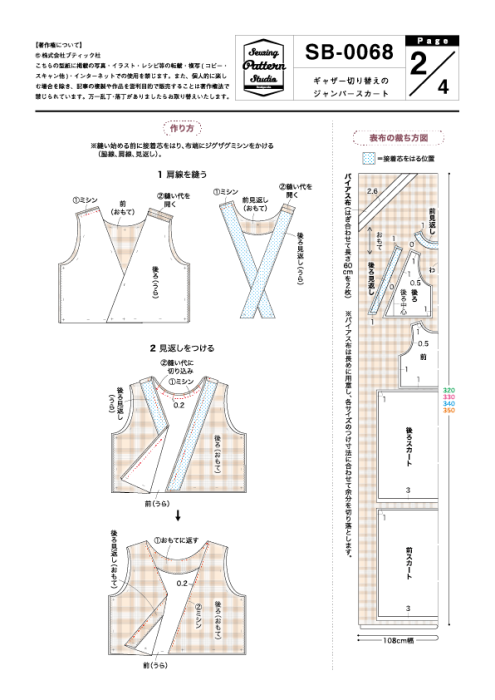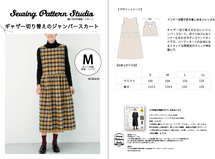 【型紙】ギャザー切り替えのジャンパースカート(SB-0068)
