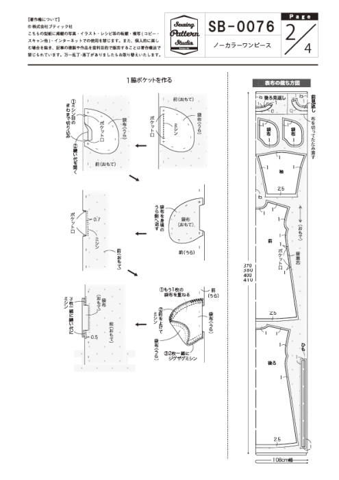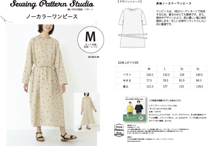 【型紙】ノーカラーワンピース(SB-0076)
