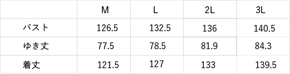 【バスト】126.5cm/ 132.5cm/ 136cm/ 140.5cm