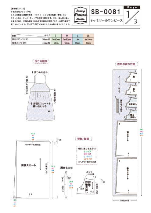 【型紙】(A4サイズ) S15枚/ M15枚/ L18枚/ LL21枚 (貼り合わせてお使いください)