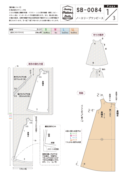 【型紙】ノースリーブワンピース(SB-0084)