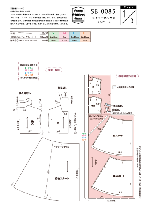 【型紙】(A4サイズ) S27枚/ M30枚/ L30枚/ LL30枚 (貼り合わせてお使いください)