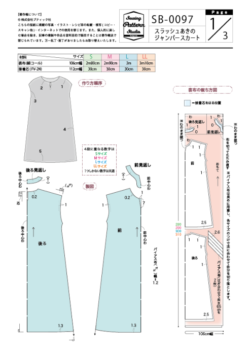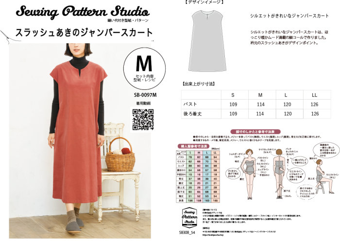 【型紙】スラッシュあきのジャンパースカート(SB-0097)