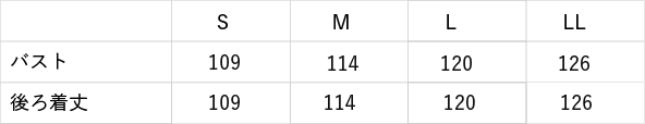 【バスト】109cm/ 114cm/ 120cm/ 126cm