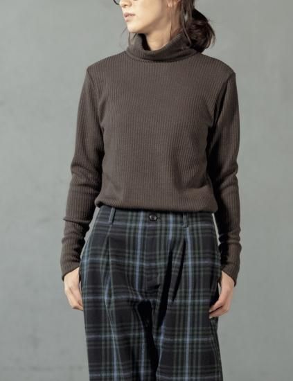 細畝の編み地で作った、セーター感覚で着られる長袖タートル。