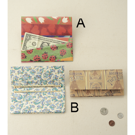 包装紙を使ったお札入れはふたつきなので、中身が飛び出る心配がありません。
