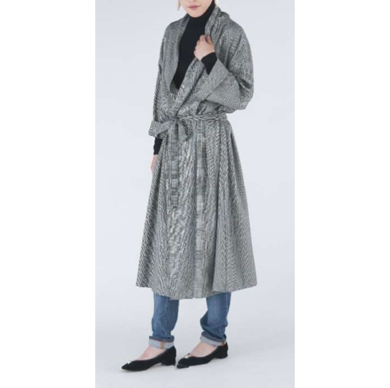 さらっと気軽に羽織って着たり、ベルトを締めてマニッシュに着こなしても素敵なローブ風のライトなアウター。
