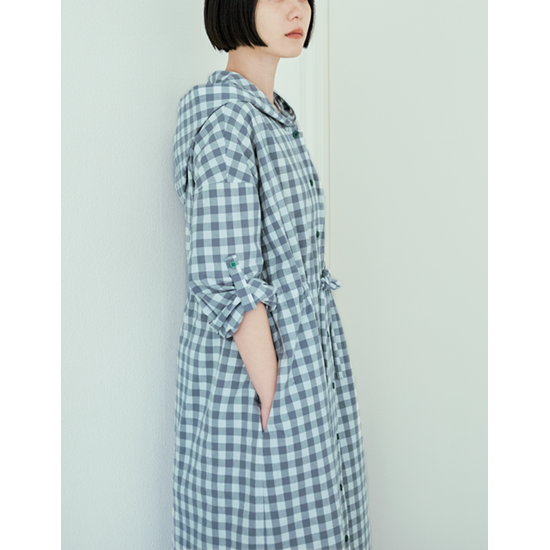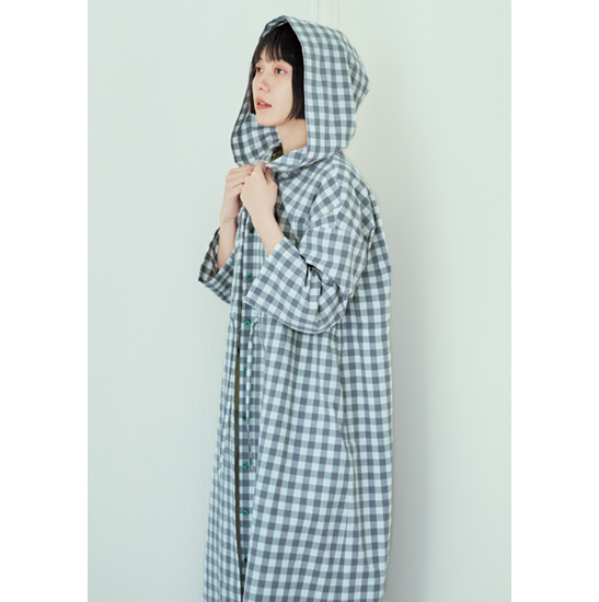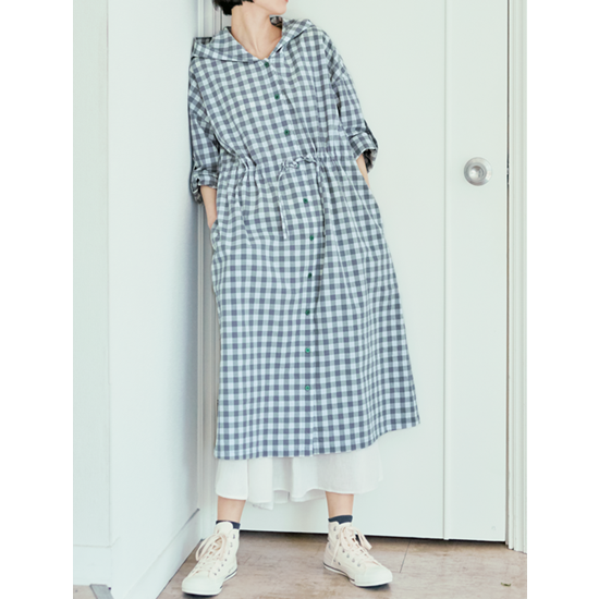 なんだか惹かれるフード付きのコートワンピは、1枚で着てもアウターとして羽織っても。袖はロールアップしやすいようにタブをつけて。