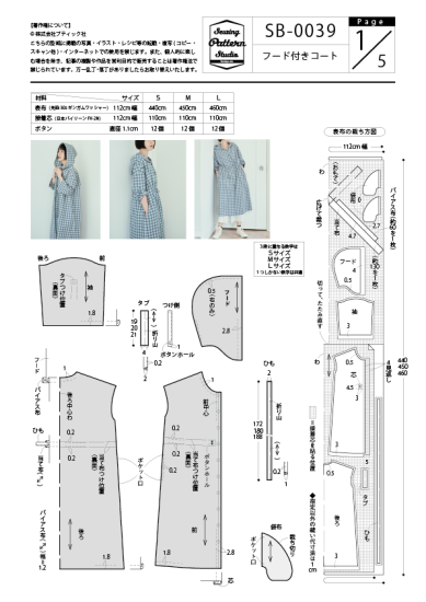 【型紙】(A4サイズ) S38枚 / M39枚 / L41枚 (貼り合わせてお使いください)