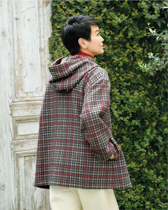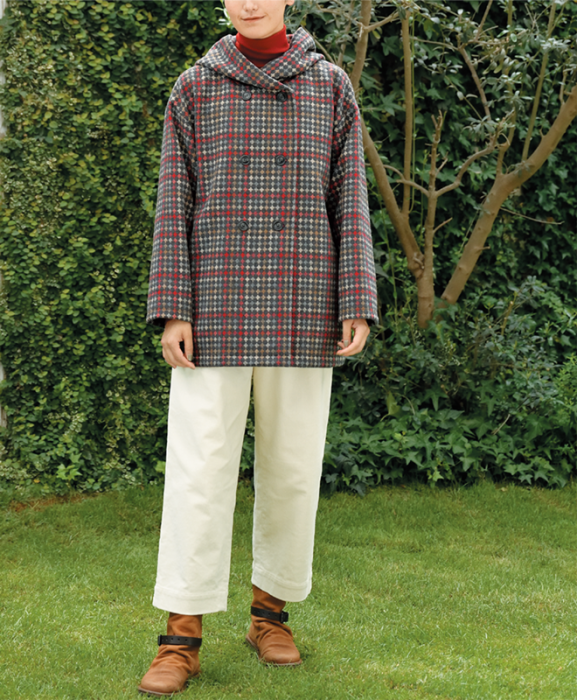 ウォーム感たっぷりのウールドピーを使ったショート丈のフーデッドコート。