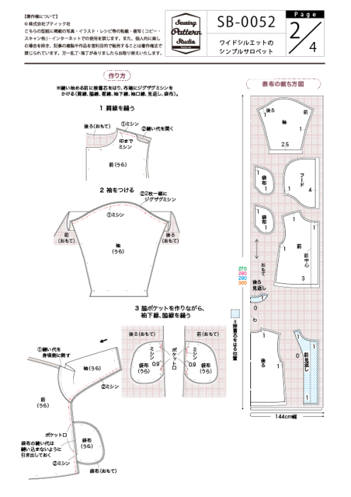 【型紙】(A4サイズ) S30枚/ M33枚/ L33枚/ LL36枚 (貼り合わせてお使いください)